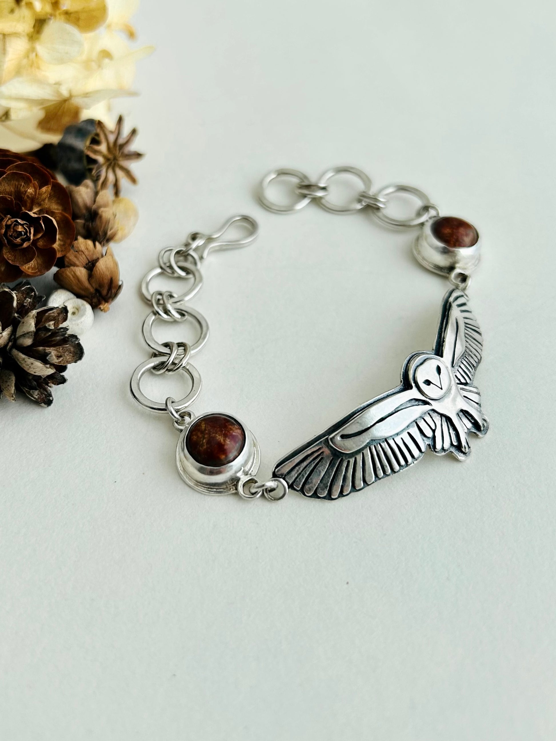 Owl Bracelet with Picasso Jasper