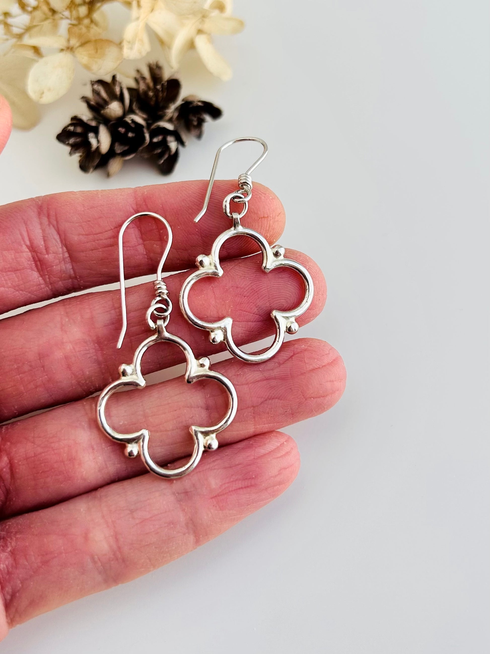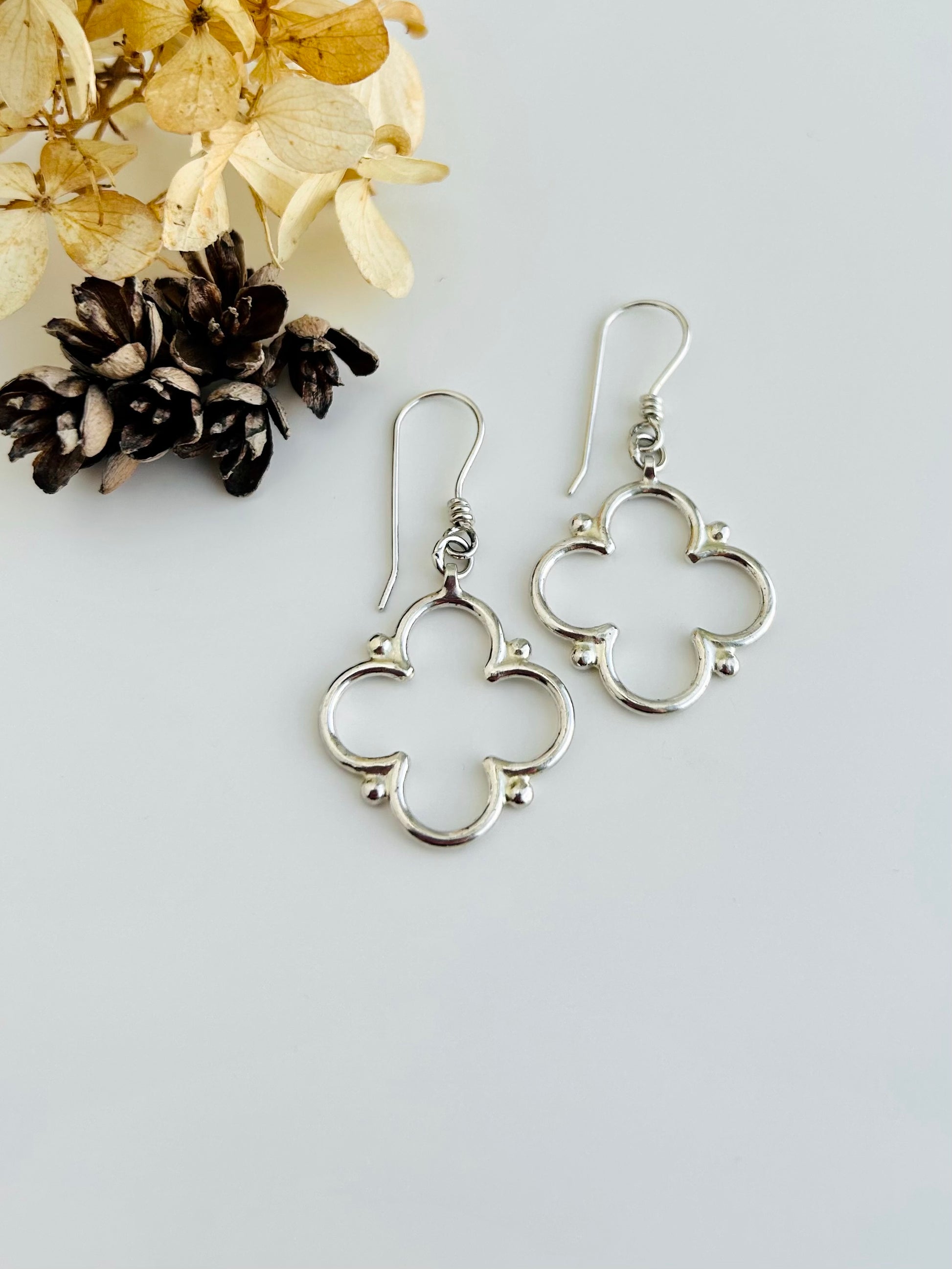 They feature carefully crafted quatrefoil shapes in sterling silver.