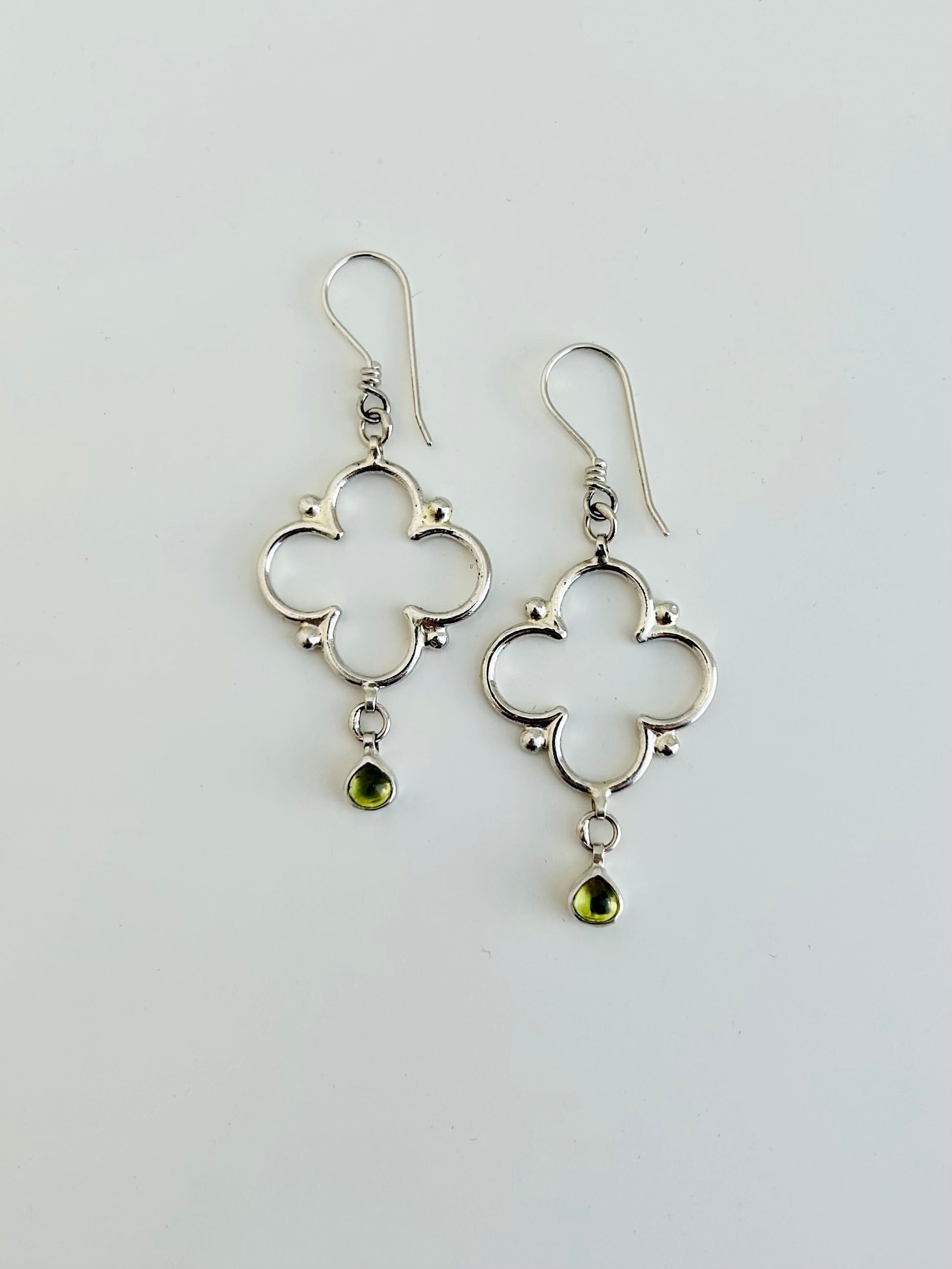 Sacred Feminine Quatrefoil Earrings with Peridot